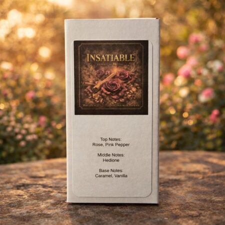 Insatiable blends soft rose and pink pepper with rich caramel and creamy vanilla, wrapped in luminous hedione for a radiant finish. A sweet floral-gourmand fragrance designed for depth, balance, and elegance.