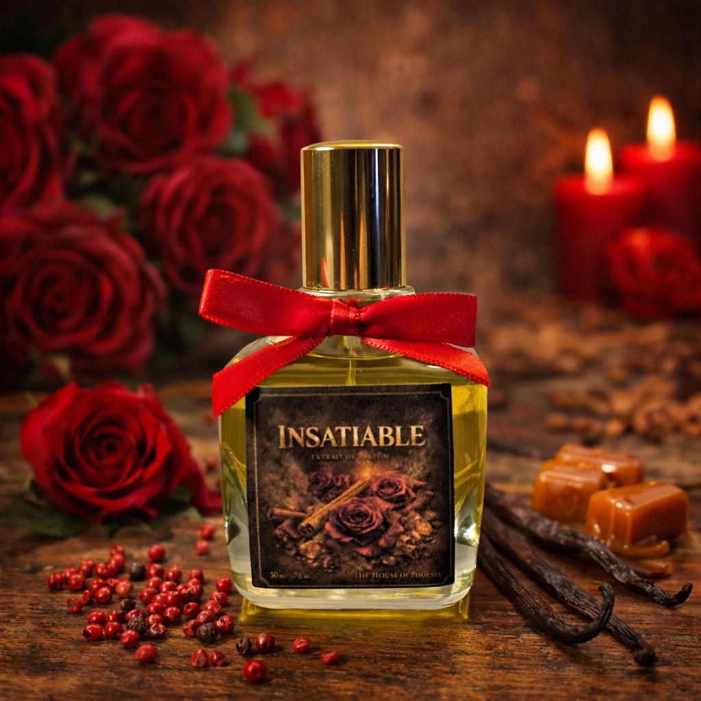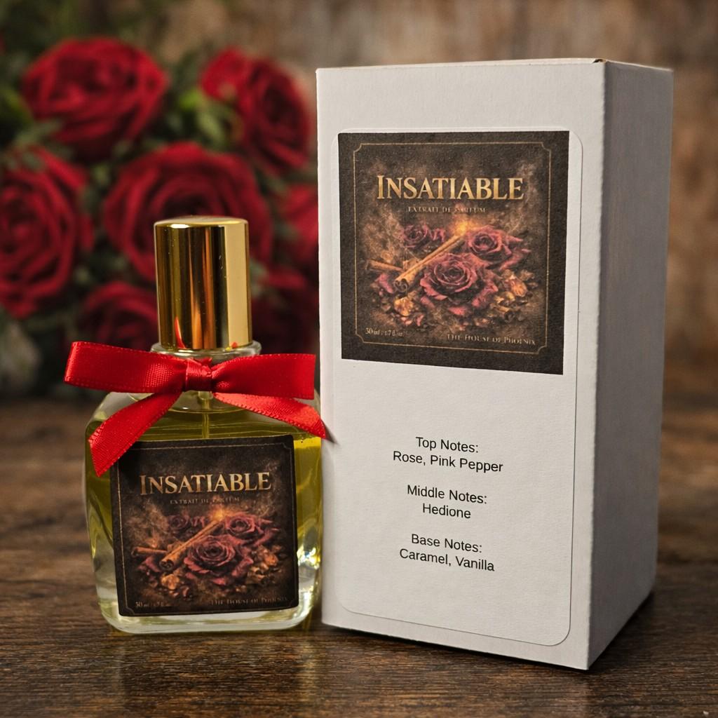 Insatiable is an independent fragrance created by The House of Phoenix. It is inspired by the scent profile of Initio Can’t Get Enough. We are not affiliated with, endorsed by, or connected to Initio Parfums Privés. All trademarks belong to their respective owners.